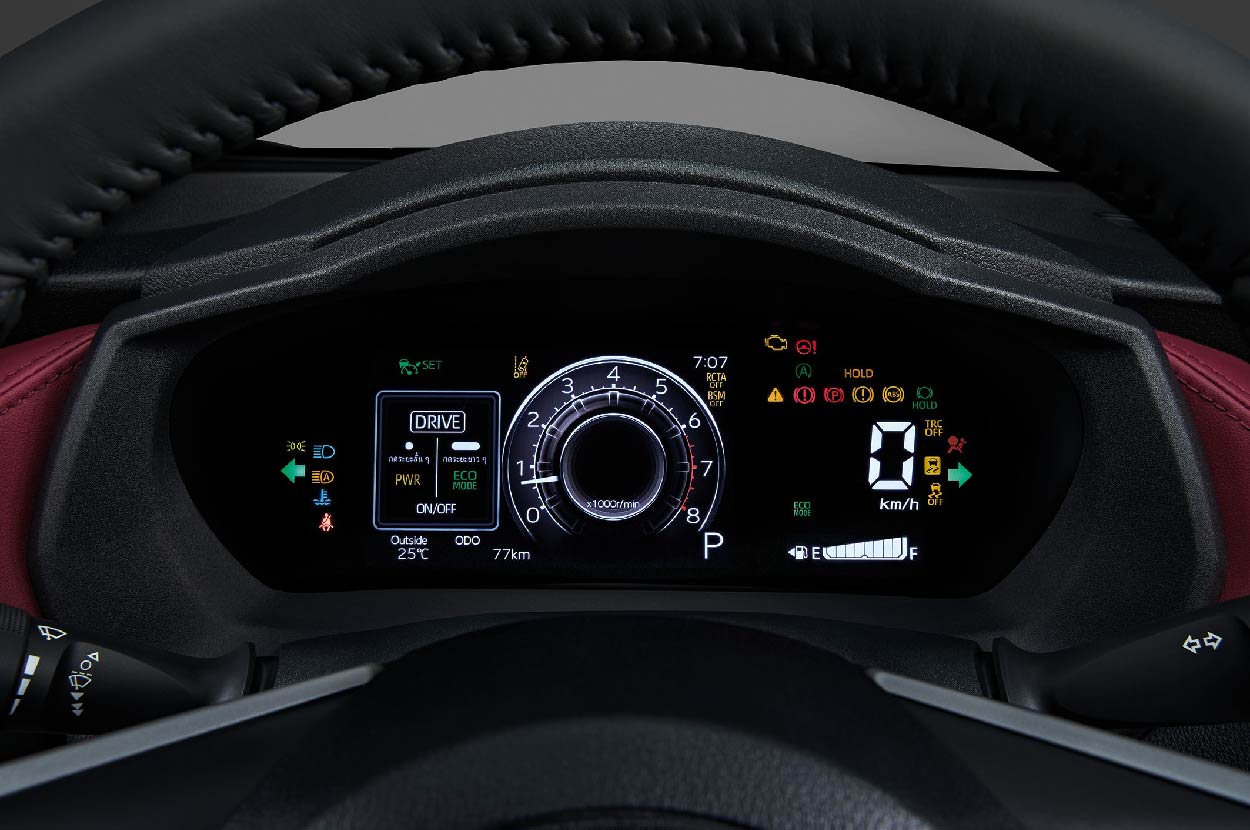 - มาตรวัดแบบ Digital พร้อมจอแสดงผลข้อมูลการขับขี่แบบสี TFT ขนาด 7 นิ้ว