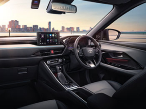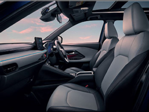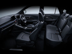 เน้นภาพรวมห้องโดยสารกว้างขวาง สบายตา โดยใช้หลักเส้นนำสายตาที่เป็นเส้นตรงลากยาวบริเวณคอนโซลด้านหน้า เสริมดีกรีความสปอร์ตด้วยการออกแบบที่นั่งฝั่งผู้ขับขี่ให้มีดีไซน์แบบ “Driver-Oriented Cockpit” เพิ่มความพรีเมียมด้วยการตกแต่งภายในด้วยวัสดุบุนุ่ม วัสดุหุ้มเบาะนั่ง พร้อมเทคโนโลยี “QUOLE MODULE ®” ช่วยลดการสะสมความร้อนบนผิวสัมผัส ไฟสร้างบรรยากาศภายในห้องโดยสารปรับได้ 14 เฉดสี ปรับความสว่างได้ 4 ระดับ และหน้าจอแสดงผลข้อมูลการขับขี่แบบดิจิตอลขนาด 7 นิ้ว