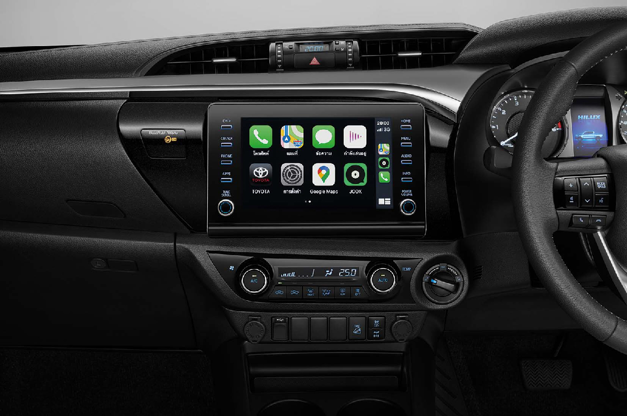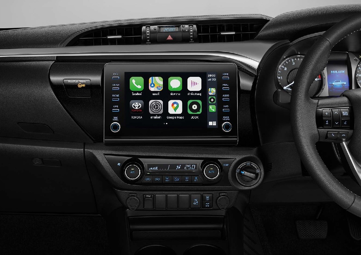 – กระจังหน้าสีดำเมทัลลิค และคิ้วตกแต่งพร้อมสัญลักษณ์ Hilux