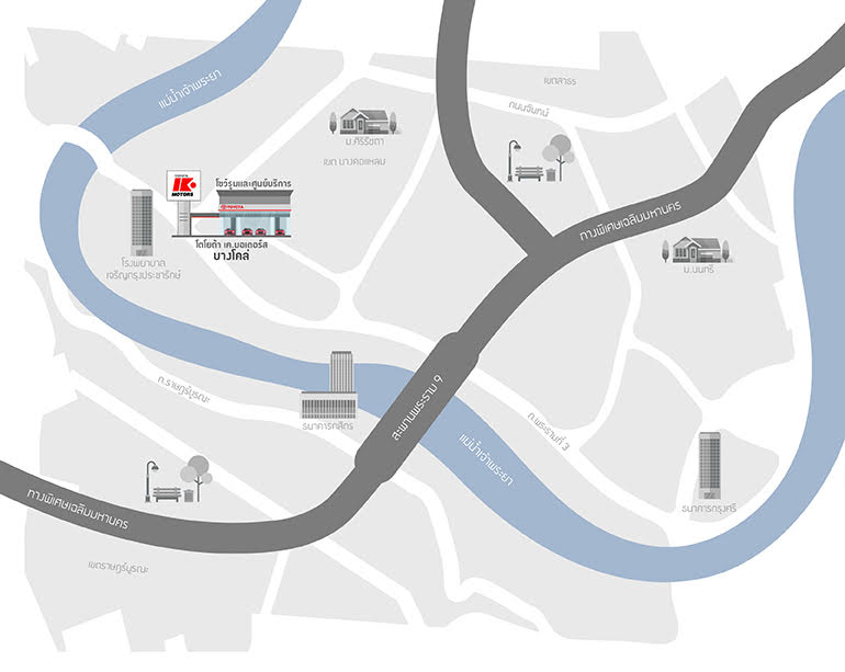 เจริญกรุงCharoen KrungเจริญนครCharoen Nakornถนนจันทน์Chan Roadบางโคล่Bang KhloบางจากBang ChakประชาอุทิศPracha UthitเพชรเกษมPetchkasemพระประแดงPhra Pradaengพระราม 3Rama IIIรามคำแหงRamkhamhaengรามอินทราRarm Intraลาดพร้าวLat Phraoวิภาวดี 46Vibhavadi 46วิภาวดี 60Vibhavadi 60ศรีนครินทร์Srinakarinสะพานใหม่Sapanmaiสุขุมวิท 43Sukumvit 43สุขาภิบาล 1Sukhaphibanห้วยขวางHuai KhwangเอกชัยEkkachai