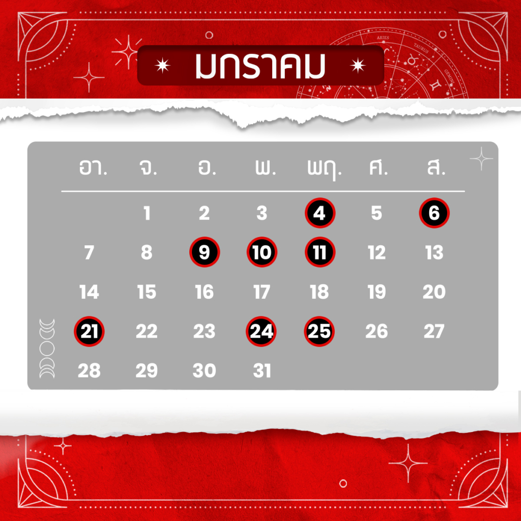 • วันพฤหัสบดี ที่ 11 มกราคม ห้ามคนเกิดวันจันทร์ใช้