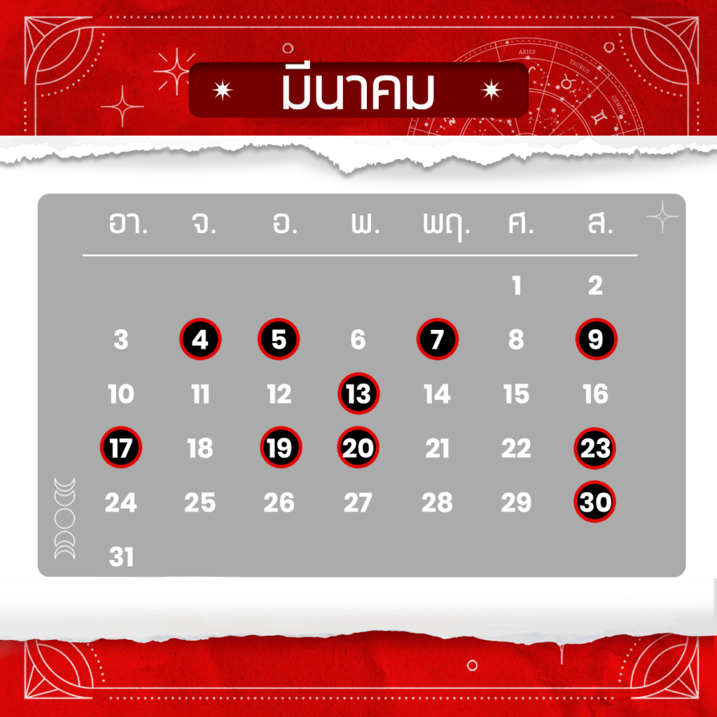 • วันพฤหัสบดี ที่ 7 มีนาคม ห้ามคนเกิดวันจันทร์ใช้