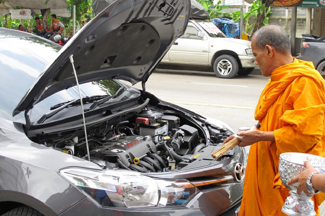 1. เพิ่มความมงคล ด้วยการนำรถให้พระเจิม ปิดทอง พรมน้ำมนต์ เป็นต้น