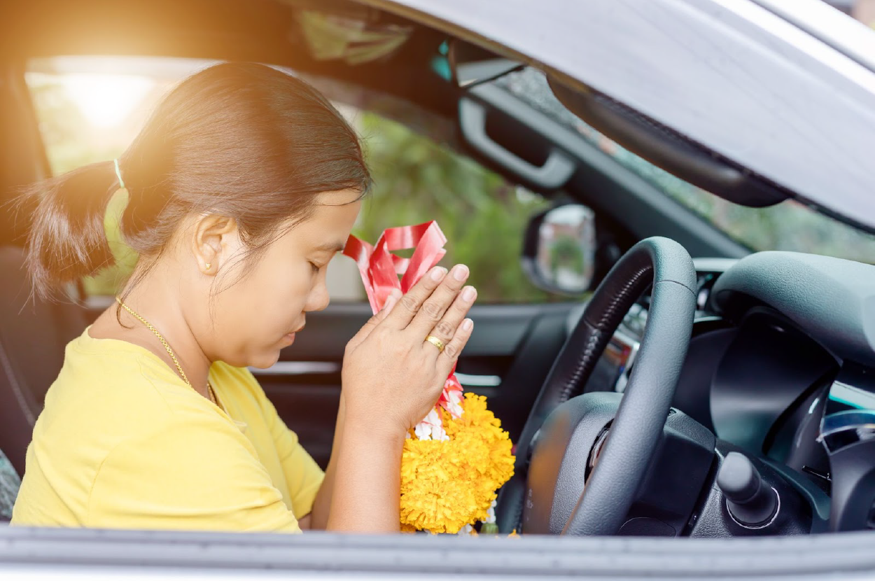 3. เวลาจับพวงมาลัย ก่อนจะออกรถทุกครั้ง ควรท่องคาถาว่า สุจิตโต แปลว่า ไปดี