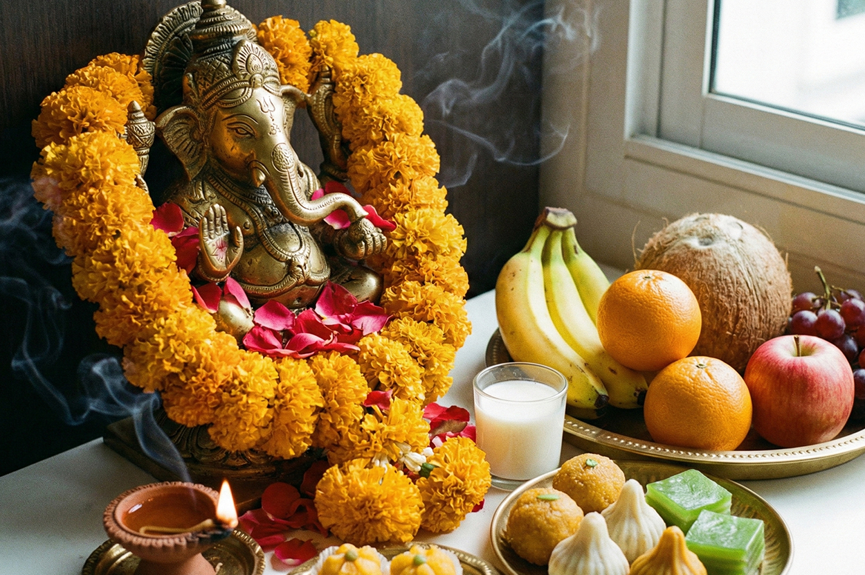 • ขนมหวาน เช่น ขนมโมทกะ (หรือขนมไทยอย่างทองหยิบ ทองหยอด)