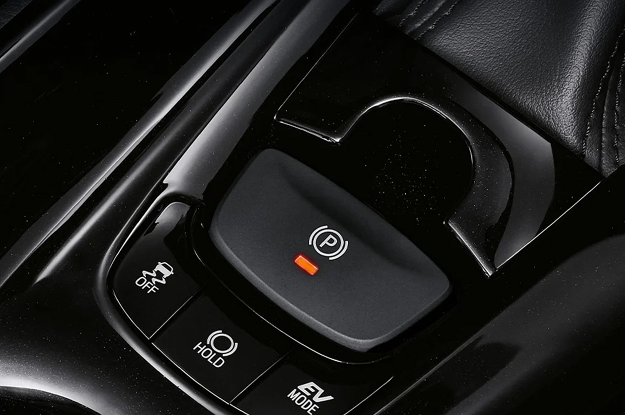 เบรกมือแบบไฟฟ้า ใช้สวิตช์หรือปุ่มกดส่งสัญญาณไปที่ ECU ควบคุมเบรกมือไฟฟ้าจากนั้น ECU จะส่งสัญญาณไปที่มอเตอร์ที่อยู่ล้อหลังด้านซ้ายและด้านขวา มอเตอร์ก็จะทำงาน ไปทำให้ผ้าเบรกจับกับจานเบรก โดยมอเตอร์จะสร้างแรงเบรกสูงสุด เพื่อไม่ให้รถเคลื่อนที่