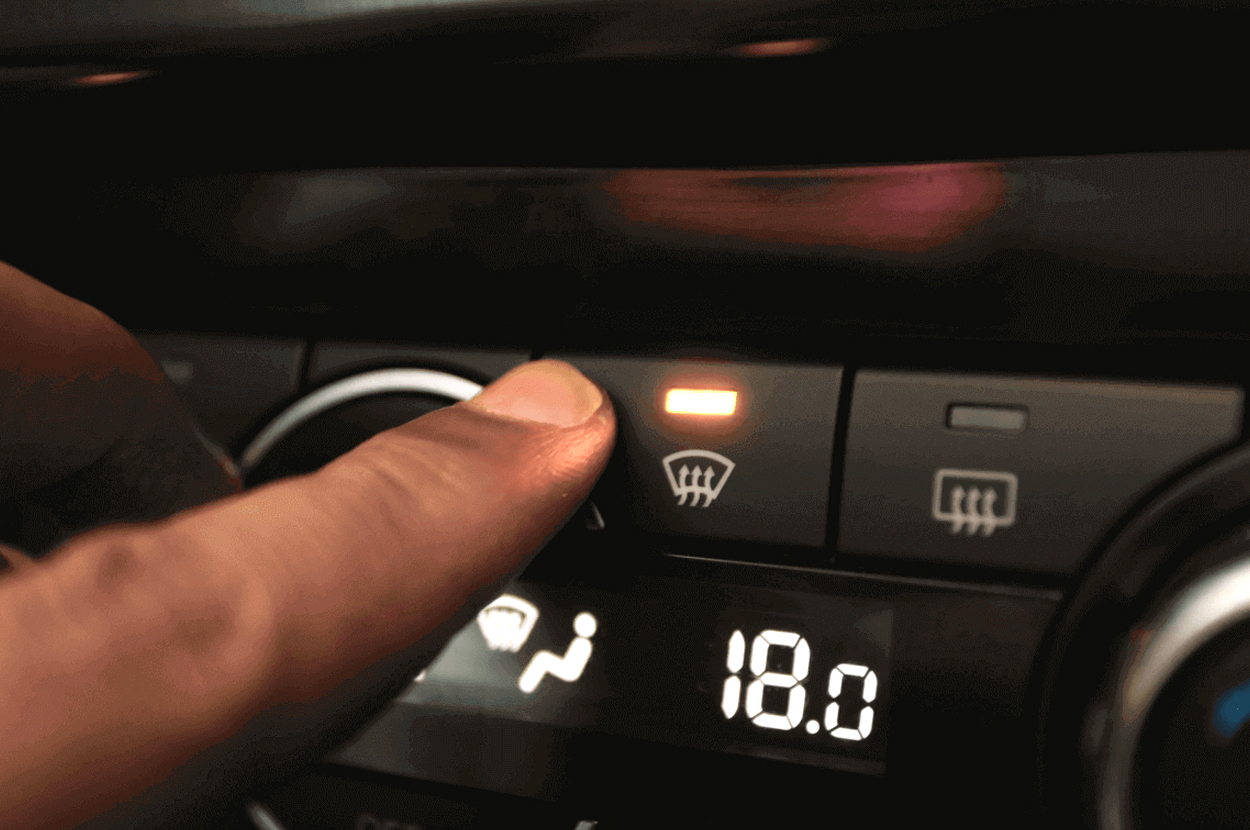 4. เปิดระบบไล่ฝ้า สามารถกดเปิดระบบไล่ฝ้าได้เลย ซึ่งความร้อนที่ระบบปล่อยออกมาตามเส้นลวดที่กระจกหลังของรถจะช่วยลดฝ้าที่เกิดขึ้นได้