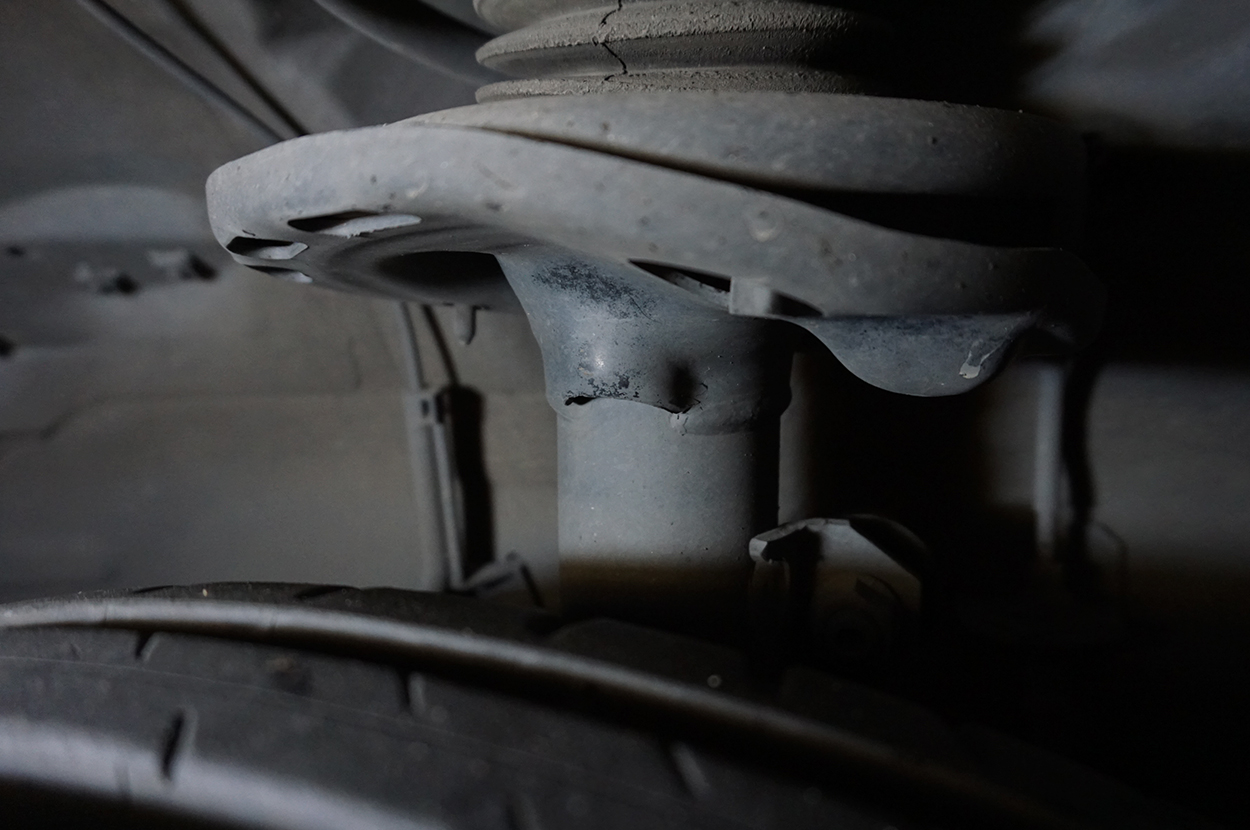 – ต่อมาให้ลองเช็คดูว่าโช๊คอัพรถของคุณมีรูปทรงที่ผิดแปลกไปหรือไม่ เช่น มีอาการคดงอ บิดเบี้ยว หรือมีรอยบุบ ถ้าเกิดลักษณะแบบนี้ขึ้น โช๊คอัพกำลังจะพังจ้า พังจริง ไม่พังงา ต้องรีบเปลี่ยนทันทีเลยครับ