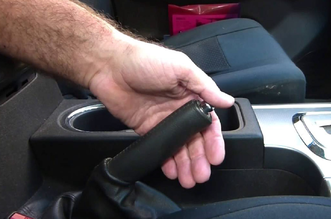 เจ้าปุ่มตัวนี้มีหน้าที่อะไรสำคัญมากน้อยแค่ไหน การดึงเบรกมือแทบจะเป็นสิ่งที่คนใช้รถทุกคนปฏิบัติกันหลังจากจอดรถเสร็จ ปุ่มกดเบรกมือมีไว้เพื่อปลดล็อคชุดกลไกด้านใน กรณีที่เราดีงเบรกมือขึ้นนั้น กลไกด้านในจะถูกเคลื่อนตัวขึ้นตามร่องฟันเฟืองขึ้นอยู่กับระยะในการออกแรงดึงมากน้อยแค่ไหน เจ้าปุ่มกดตัวนี้จะมีหน้าที่ปลดล็อคกลไกให้หลุดออกจากฟันเฟืองดังกล่าวแค่นั้นเองครับ แต่ทุกครั้งที่ต้องการปลดเบรกมือลงต้องกดปุ่มทุกครั้งพร้อมกับกดเบรกมือลงที่ถูกต้องครับ