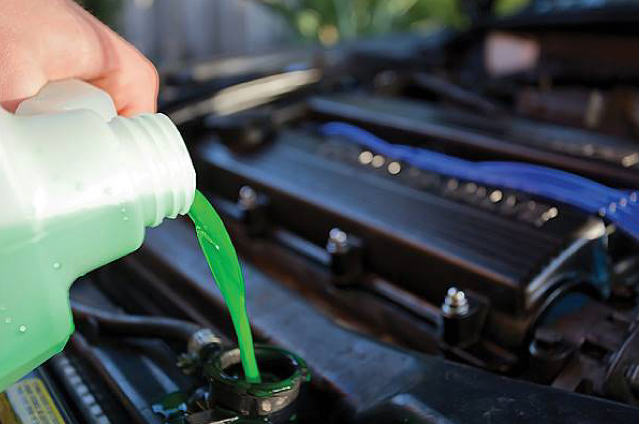 น้ำยาหล่อเย็น (Coolant) ส่วนประกอบหลักของมันจะมีน้ำ, สารหล่อเย็น , หัวเชื้อป้องกันสนิม และสีต่างๆ ฯลฯ ซึ่งถ้าพูดถึงคุณสมบัติจริงๆ แล้ว น้ำยาหล่อเย็นไม่ได้มีหน้าที่ระบายความร้อน แต่จะช่วยทำให้จุดเดือดของน้ำที่ผสมน้ำยาหล่อเย็นสูงขึ้น ทำให้น้ำที่อยู่ในหม้อน้ำเดือดช้าลงแถมยังป้องกันการเกิดสนิมตะกรันตะกอน เพราะเมื่อมีสนิมมันก็จะผุกร่อนมีตะกอนน้ำยาจึงช่วยไม่ให้มีการอุดตันในรังผึ้งของหม้อน้ำได้ครับ