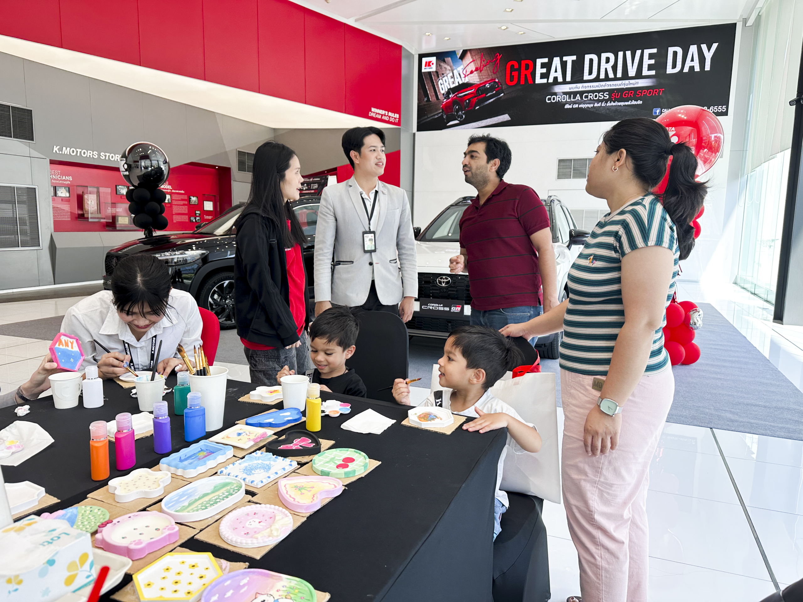 จบลงไปอย่างอบอุ่นและเต็มไปด้วยรอยยิ้ม กับอีกหนึ่งกิจกรรมพิเศษที่ทาง โตโยต้า เค.มอเตอร์ส ตั้งใจจัดขึ้นเพื่อมอบช่วงเวลาดีๆ ให้กับลูกค้า ในงาน “GREAT DRIVE DAY” ช่วงเวลาแห่งครอบครัว กับรถยนต์ COROLLA CROSS GR SPORT ภายในงาน นอกจากจะได้สัมผัสรถยนต์คันจริงอย่างใกล้ชิด พร้อมพนักงานขายคอยให้คำแนะนำอย่างเป็นกันเองแล้ว ยังมีกิจกรรม Work Shop “Ceramic Paints” สุดน่ารัก ให้ลูกค้าได้ร่วมสร้างสรรค์งานศิลปะด้วยตัวเอง กับการเพ้นท์ชิ้นงานปูนปั้นในสไตล์ของแต่ละคน ทำให้ทุกชิ้นเป็นผลงานชิ้นเดียวในโลก และสามารถนำกลับบ้านไปเป็นของที่ระลึกแทนความทรงจำดีๆ ได้อีกด้วย