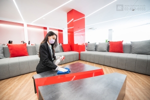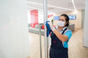 – กำหนดให้แม่บ้านใช้น้ำยาฆ่าเชื้อ เช็ดทำความสะอาดพื้นที่ให้บริการลูกค้าอย่างสม่ำเสมอ