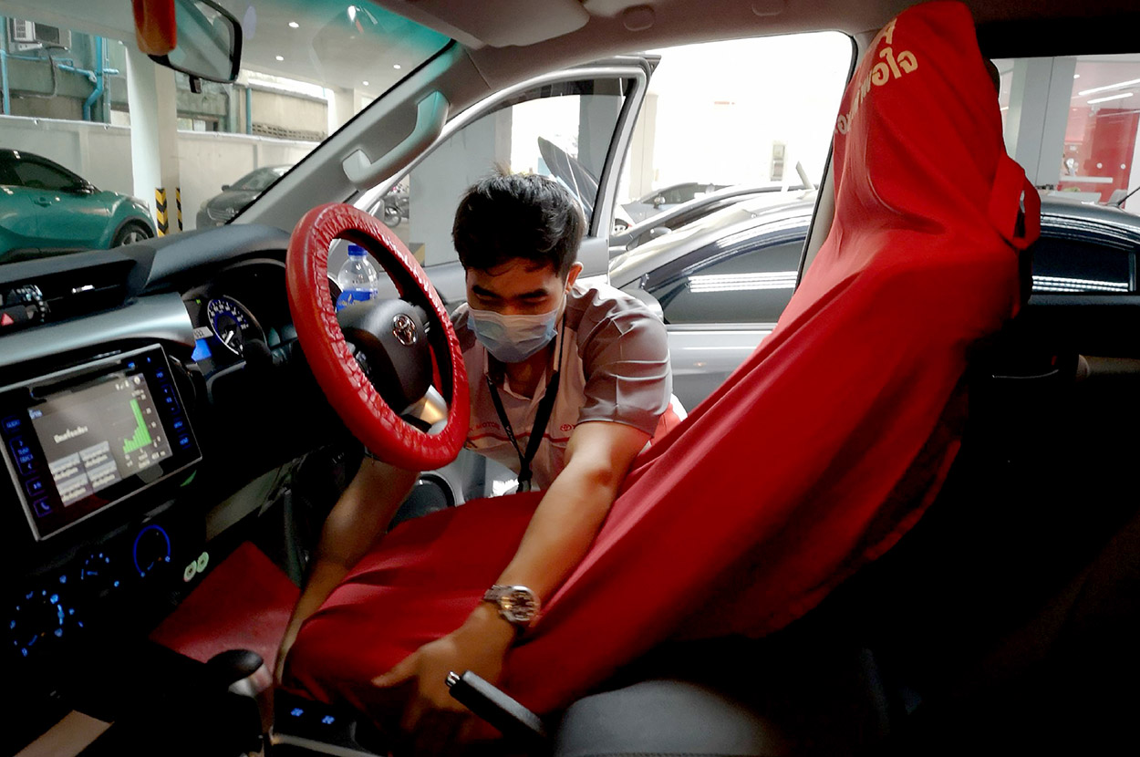 – พนักงานทดสอบรถลูกค้า, พนักงานเลื่อนรถเข้าซ่อม-ส่งมอบรถลูกค้า, พนักงานผู้ให้บริการรับ-ส่งรถยนต์ สวมหน้ากากอนามัย และสวมถุงมือทุกครั้งที่ให้บริการ