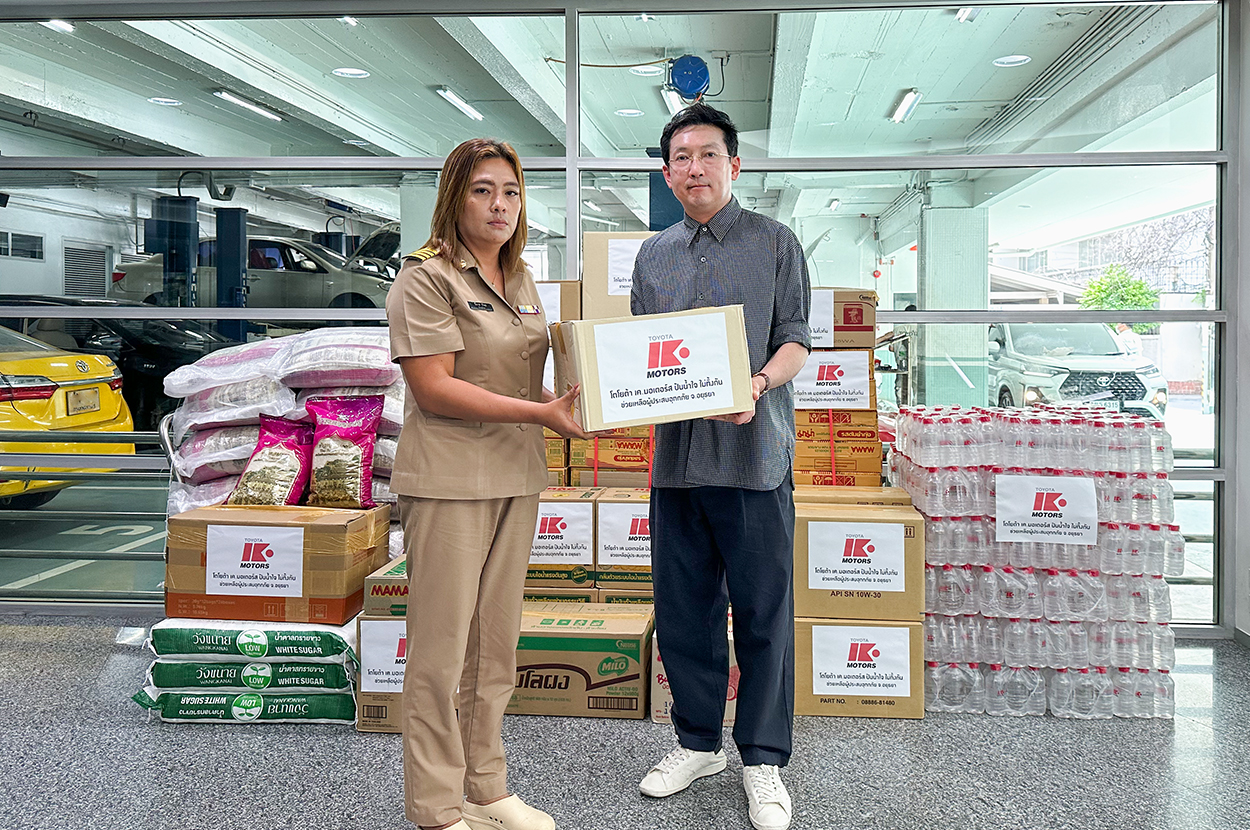 “โตโยต้า เค.มอเตอร์ส โครงการปันน้ำใจ ไม่ทิ้งกัน” มอบของยังชีพเพื่อช่วยเหลือผู้ได้รับผลกระทบและประสบภัยน้ำท่วม จังหวัดพระนครศรีอยุธยา เมื่อวันเสาร์ ที่ 5 ตุลาคม 2567 ที่ผ่านมา ที่บริษัท โตโยต้า เค.มอเตอร์ส ผู้จำหน่ายโตโยต้า จำกัด