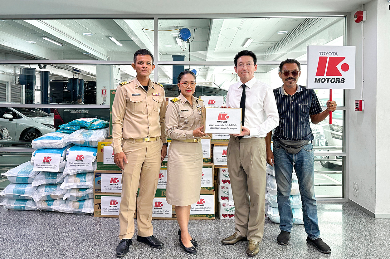“โตโยต้า เค.มอเตอร์ส โครงการปันน้ำใจ ไม่ทิ้งกัน” มอบสิ่งของจำเป็นช่วยเหลือผู้ได้รับผลกระทบและประสบภัยน้ำท่วม จังหวัดพระนครศรีอยุธยา จำนวน 2 หมู่บ้าน กว่า 100 หลังคาเรือน ในวันที่ 4 พฤศจิกายน 2568 ที่บริษัท โตโยต้า เค.มอเตอร์ส ผู้จำหน่ายโตโยต้า จำกัด