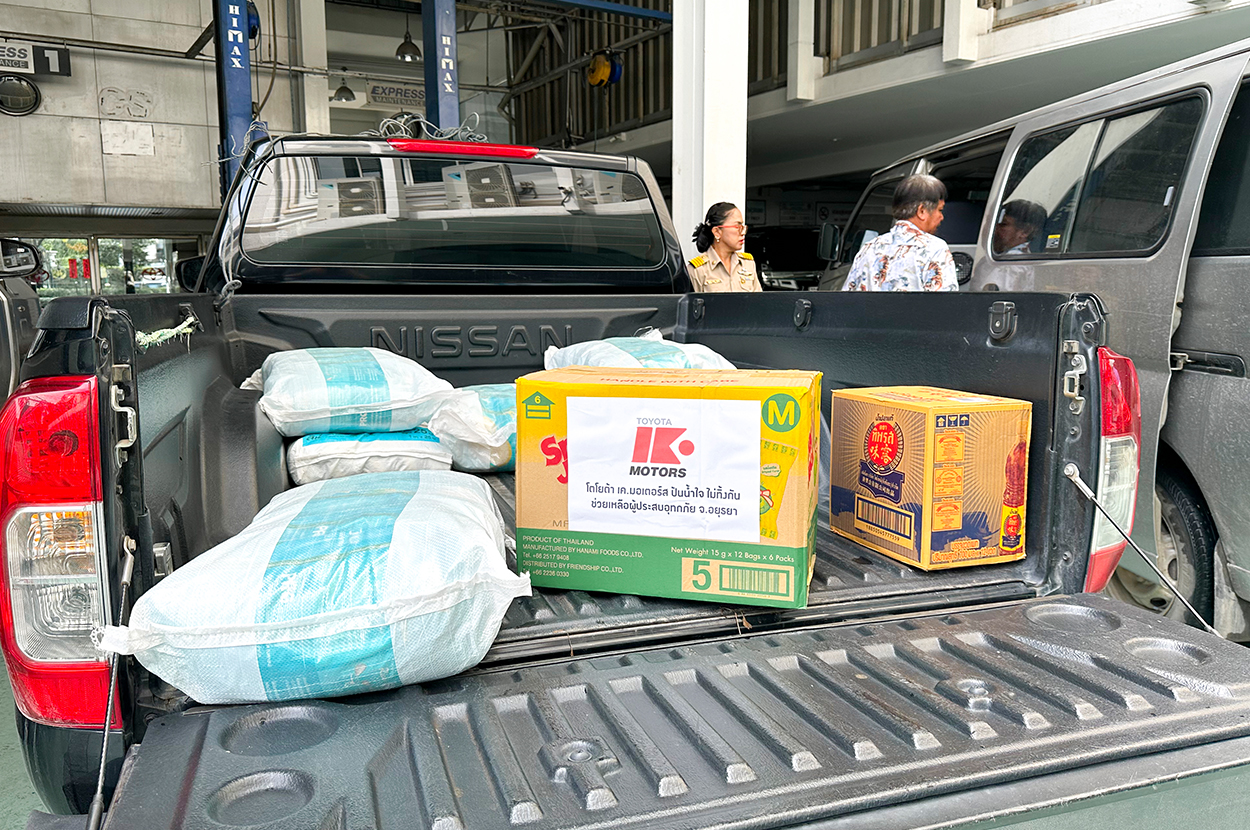 บริษัท โตโยต้า เค.มอเตอร์ส ผู้จำหน่ายโตโยต้า จำกัด โดยคุณจิรเดช สมภพรุ่งโรจน์ รองกรรมการผู้จัดการ เป็นตัวแทนคณะผู้บริหาร มอบของยังชีพ ช่วยเหลือเยียวยาผู้ประสบภัยน้ำท่วม ทั้งเครื่องอุปโภคและบริโภค เช่น ข้าวสาร อาหารแห้ง รวมไปถึงยารักษาโรค ยากันยุง ของใช้จำเป็นสำหรับผู้หญิง คนชรา และอื่นๆ อีกมากมาย ให้กับ 2 หมู่บ้าน ได้แก่ หมู่ที่ 2 ตำบลหลวงโดด และ หมู่ที่ 6 ตำบลไชยน้อย อำเภอบางบาล จังหวัดพระนครศรีอยุธยา ที่ได้รับความเดือดร้อนจากเหตุการณ์น้ำท่วม ซึ่งกินเวลานานกว่า 3 เดือน จำนวน 100 หลังคาเรือน โดยมีนายชาญสิทธิ์ บุญมี ผู้ใหญ่บ้านหมู่ที่ 2 และ นางวรณัฎ ศรีโชติ ผู้ใหญ่บ้านหมู่ที่ 6 เป็นตัวแทนหมู่บ้านมารับมอบของ ที่บริษัท โตโยต้า เค.มอเตอร์ส ผู้จำหน่ายโตโยต้า จำกัด ในวันที่ 4 พฤศจิกายน 2568 มอบสิ่งของจำเป็น
