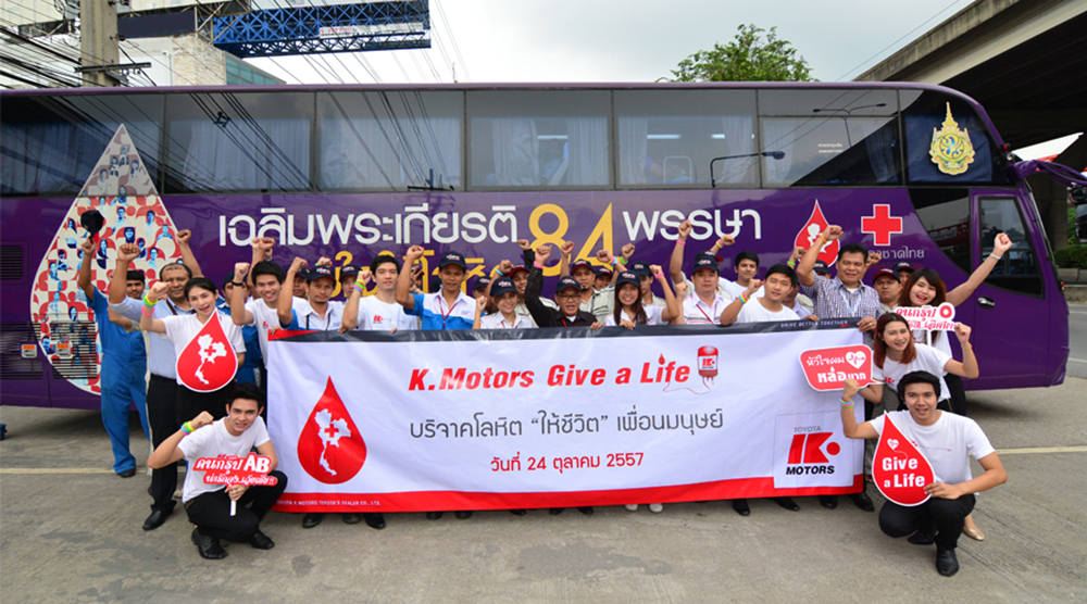 โตโยต้า เค.มอเตอร์ส ผู้จำหน่ายรถโตโยต้าอันดับ 1 ของไทย จัดโครงการ K.Motors Give a life บริจาคโลหิต “ให้ชีวิต” เพื่อนมนุษย์ กิจกรรมเพื่อสร้างความสุขแห่งการแบ่งปัน