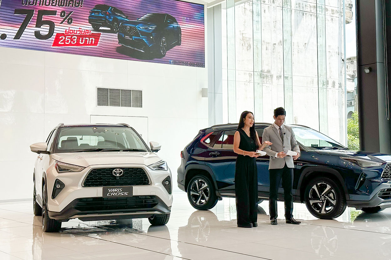 รถยนต์ BSUV ใหม่ เครื่องยนต์ไฮบริด… ฉลอง…เปิดตัวรถรุ่นใหม่ล่าสุด All New Toyota Yaris Cross ที่โชว์รูมโตโยต้า เค.มอเตอร์ส สาขาถนนจันทน์ จัดเต็มทุกอารมณ์ สนุก ฟิน มันส์ พร้อมอวดโฉม Yaris Cross ให้ชมแบบแน่นโชว์รูม และ Live เปิดตัวรถใหม่ สำหรับผู้ชมทางบ้าน กับ 2 พิธีกรคู่หู…