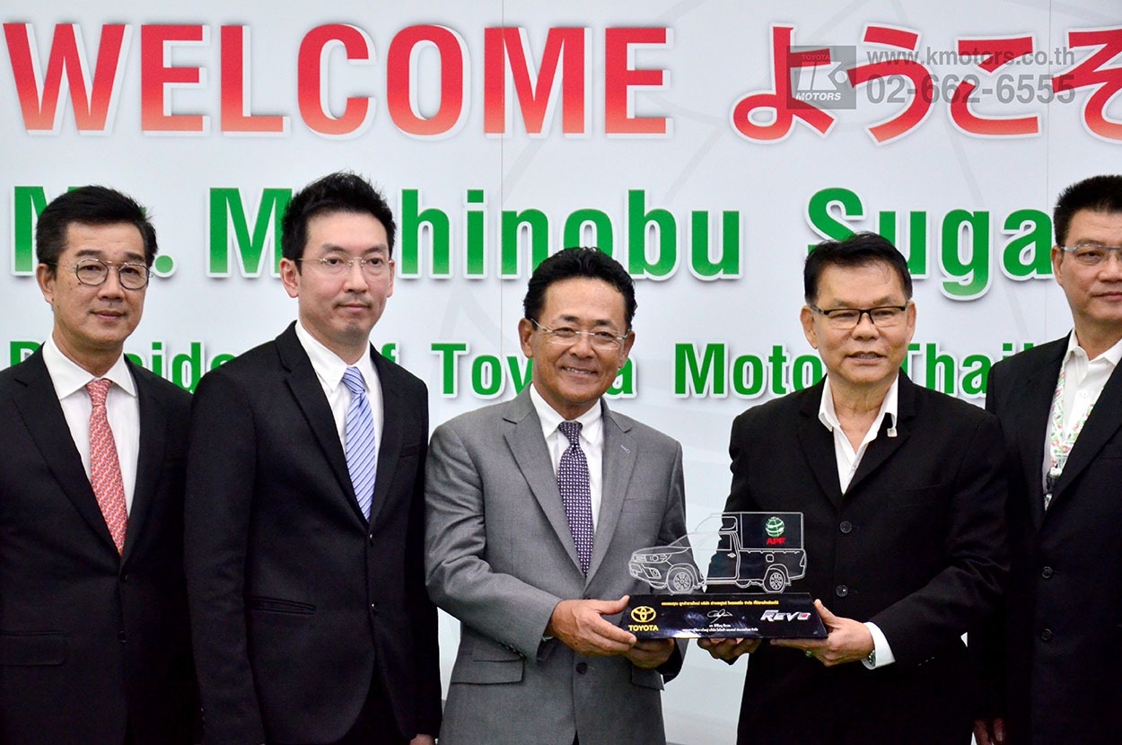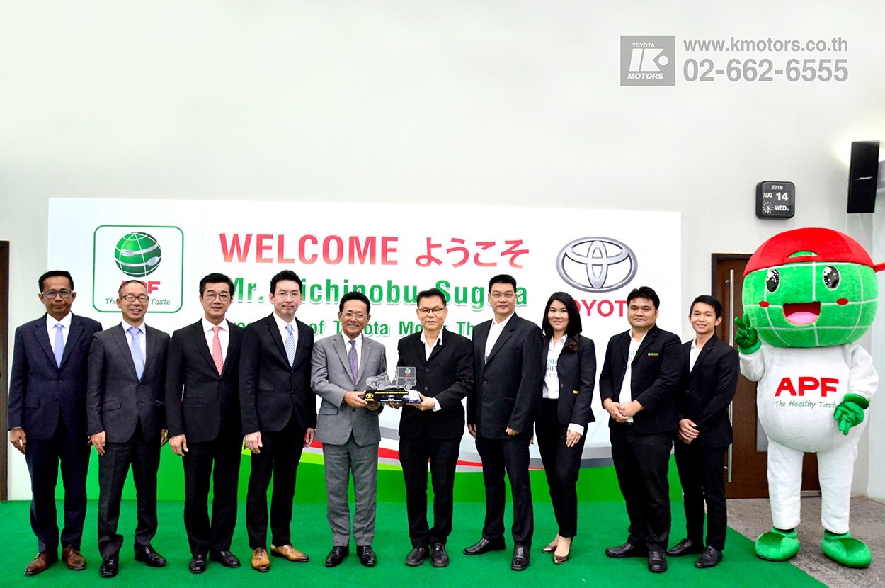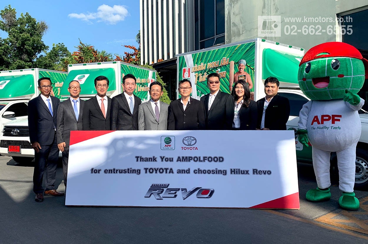 คุณจิรเดช สมภพรุ่งโรจน์ รองกรรมการผู้จัดการ บริษัท โตโยต้า เค.มอเตอร์ส ผู้จำหน่ายโตโยต้า จำกัด พร้อมด้วยคณะผู้บริหาร บริษัท โตโยต้า มอเตอร์ ประเทศไทย จำกัด นำโดย มร.มิจิโนบุ ซึงาตะ กรรมการผู้จัดการใหญ่ เข้าพบ ดร. เกรียงศักดิ์ เทพผดุงพร กรรมการผู้จัดการ และ ดร. กฤษฏา โสภา ผู้อำนวยการส่วนงานการตลาดและสารสนเทศ บริษัท อำพลฟูดส์ โพรเซสซิ่ง จำกัด เพื่อแสดงความขอบคุณ พร้อมทำการส่งมอบ ไฮลักซ์ รีโว่ จำนวน 40 คัน เพื่อใช้ดำเนินธุรกิจกระจายสินค้าให้เข้าถึงลูกค้าได้อย่างครอบคลุมทุกพื้นที่ทั่วประเทศ โดยทาง อำพลฟูดส์ มีแผนที่จะตั้งศูนย์กระจายสินค้าให้ครบ 70 แห่ง ภายใน 3 ปี ซึ่งไฮลักซ์ รีโว่ กระบะพันธุ์แกร่งของเราสามารถตอบโจทย์ได้เป็นอย่างดี ทั้งด้านสมรรถนะที่ดีเยียม ประหยัดน้ำมัน เป็นรถกระบะยอดนิยมอย่างแท้จริง