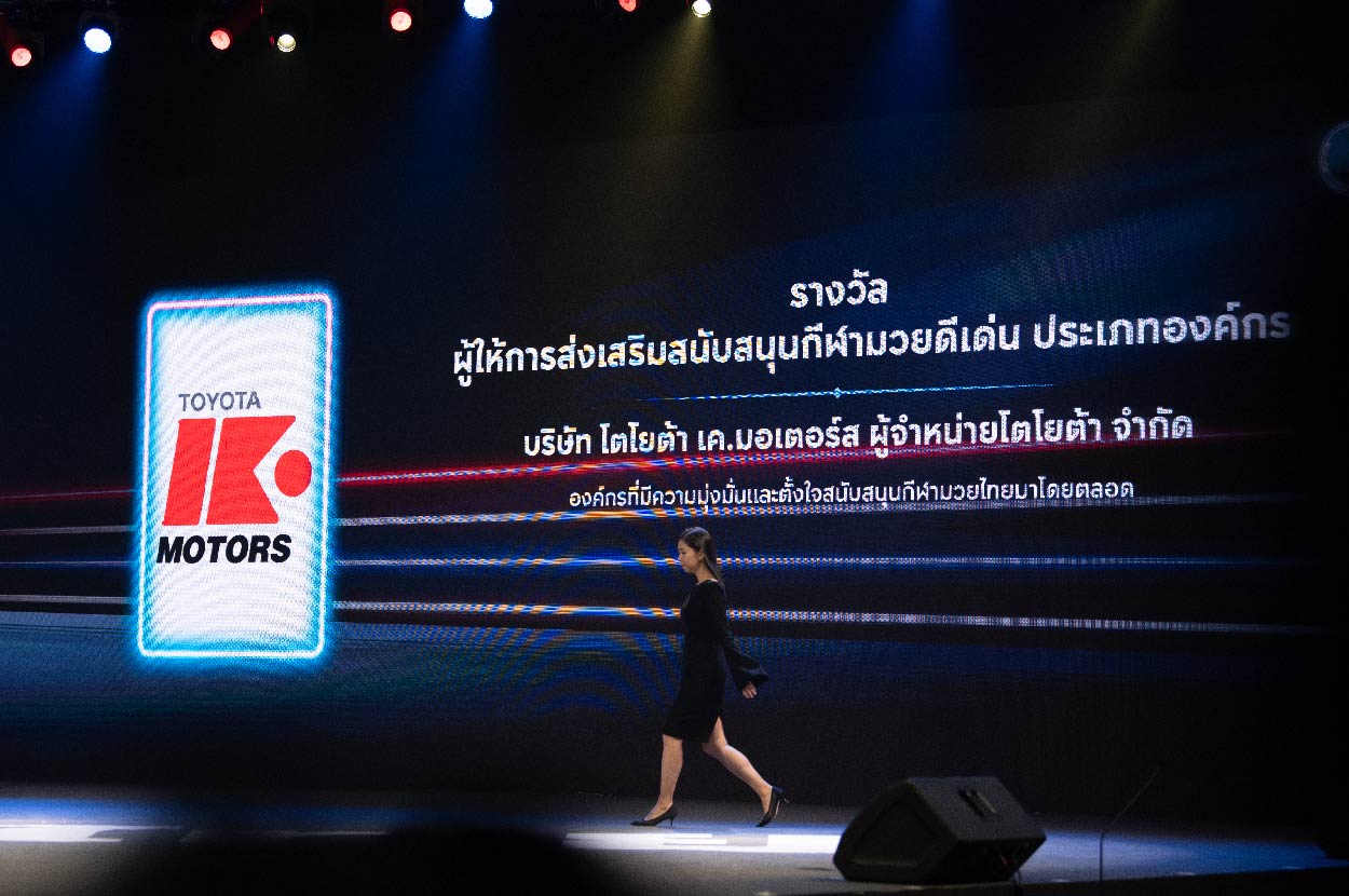 ซึ่งในปีนี้ โตโยต้า เค.มอเตอร์ส ขึ้นรับรางวัลผู้ให้การส่งเสริมและสนับสนุนกีฬามวยดีเด่น ประเภทองค์กร โดยคุณเกตุนภา เสนางาม จรรยากูล ผู้จัดการแผนกสื่อสารและประชาสัมพันธ์การตลาด เป็นตัวแทนคณะผู้บริหารขึ้นรับรางวัลกับคุณพิพัฒน์ รัชกิจประการ รัฐมนตรีว่าการกระทรวงการท่องเที่ยวและกีฬา