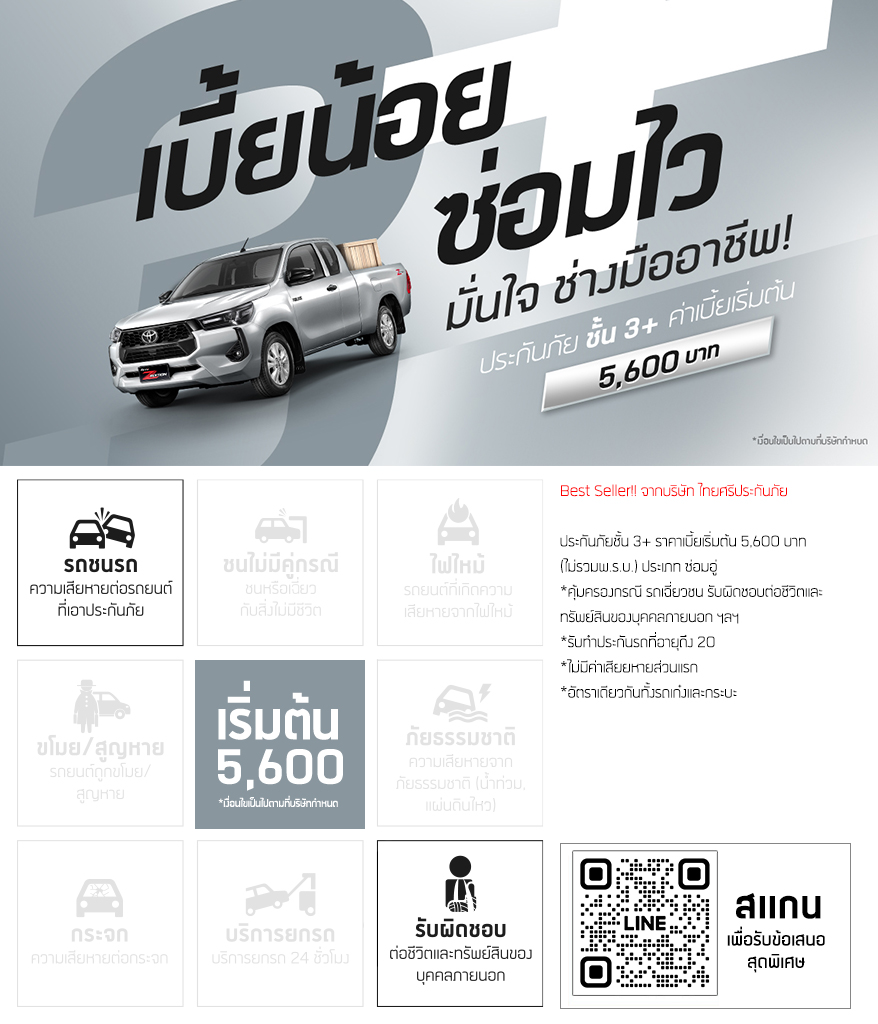 ประกันภัยชั้น 3+ คุ้มครอง ไร้กังวล เบี้ยเริ่มต้น 5,600 บาท