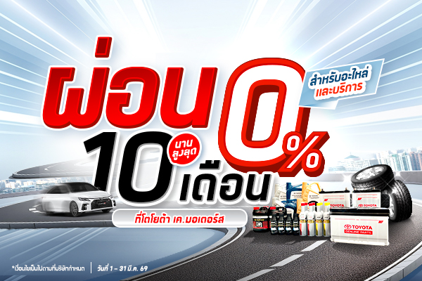 ซื้ออะไหล่และเข้ารับบริการที่ศูนย์ฯ เค.มอเตอร์ส ผ่อนชำระบริการ 0% นาน 10 เดือน