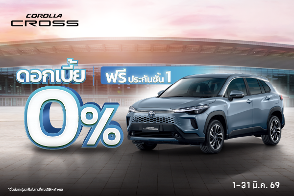 เป็นเจ้าของ New Corolla Cross ดอกเบี้ย 0% พร้อมฟรีประกันภัยชั้น 1